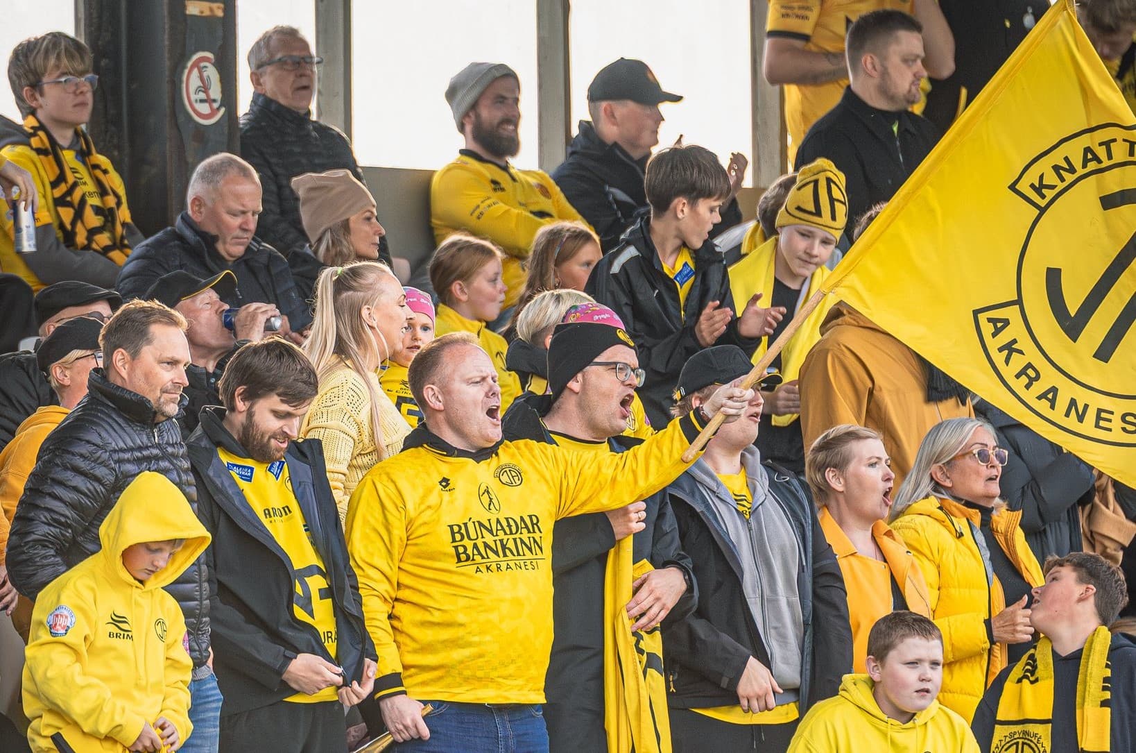 Brynjólfur Þór og aðrir stuðningsmenn ÍA í góðum gír. Ljósm. kfía