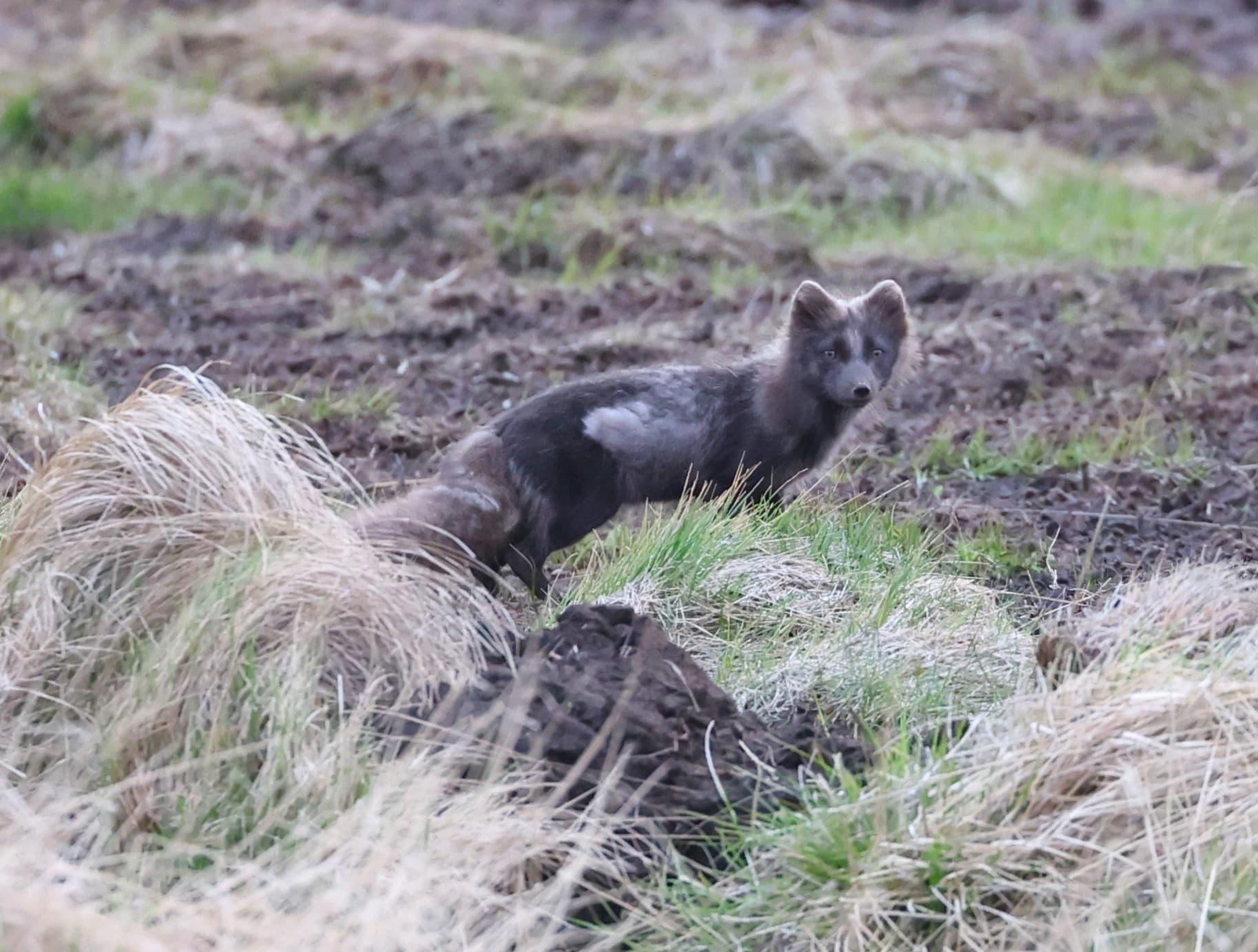 Heimskautarefurinn, eða íslenska tófan, var eina spendýrið á Íslandi þegar fyrsta landnámsfólkið fá Norður-Evrópu kom hingað. Myndin var tekin í Borgarfirði síðasta vor. Ljósm. gó