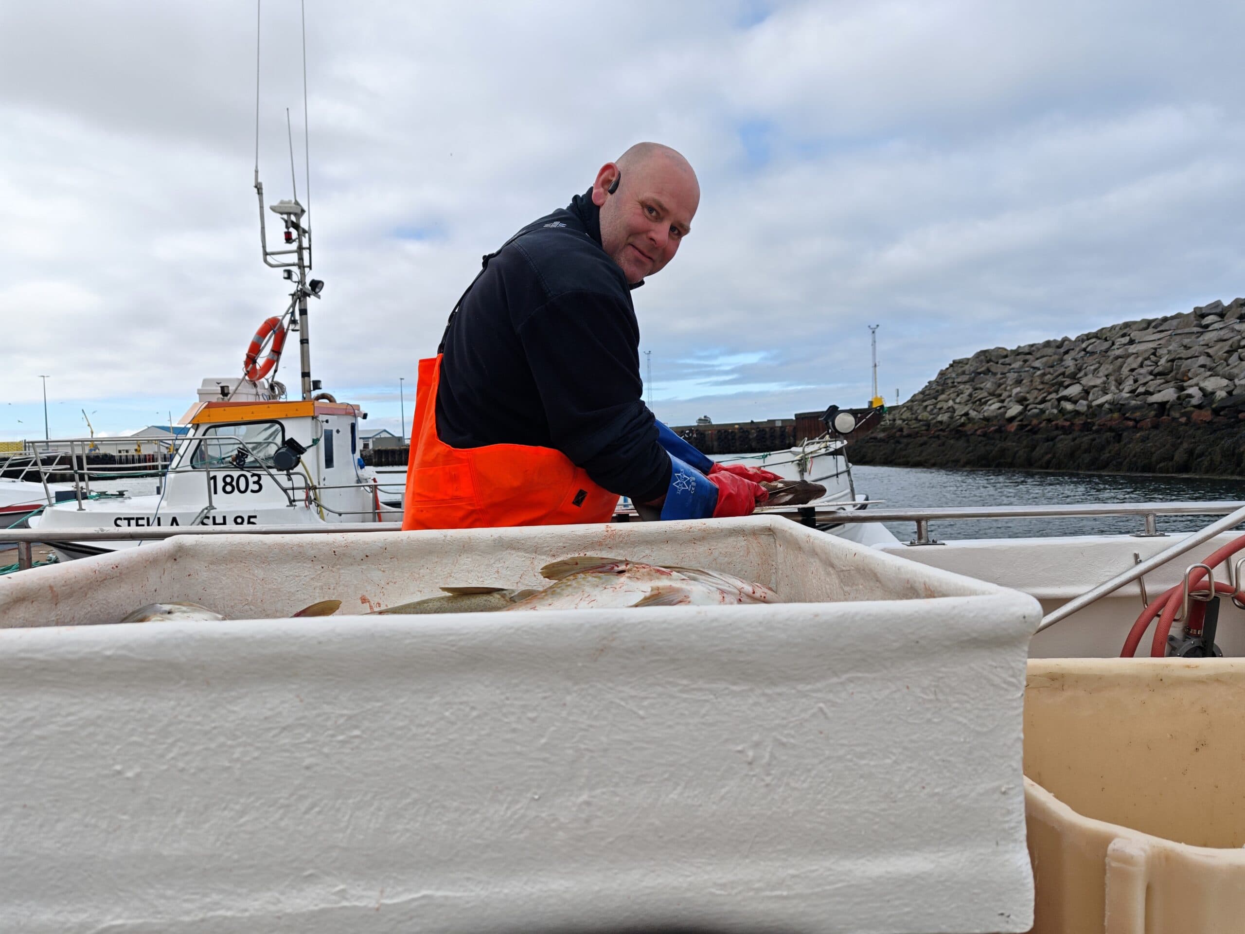 Sævar að flaka og gera klárt fyrir grillið um helgina. Ljósm. af
