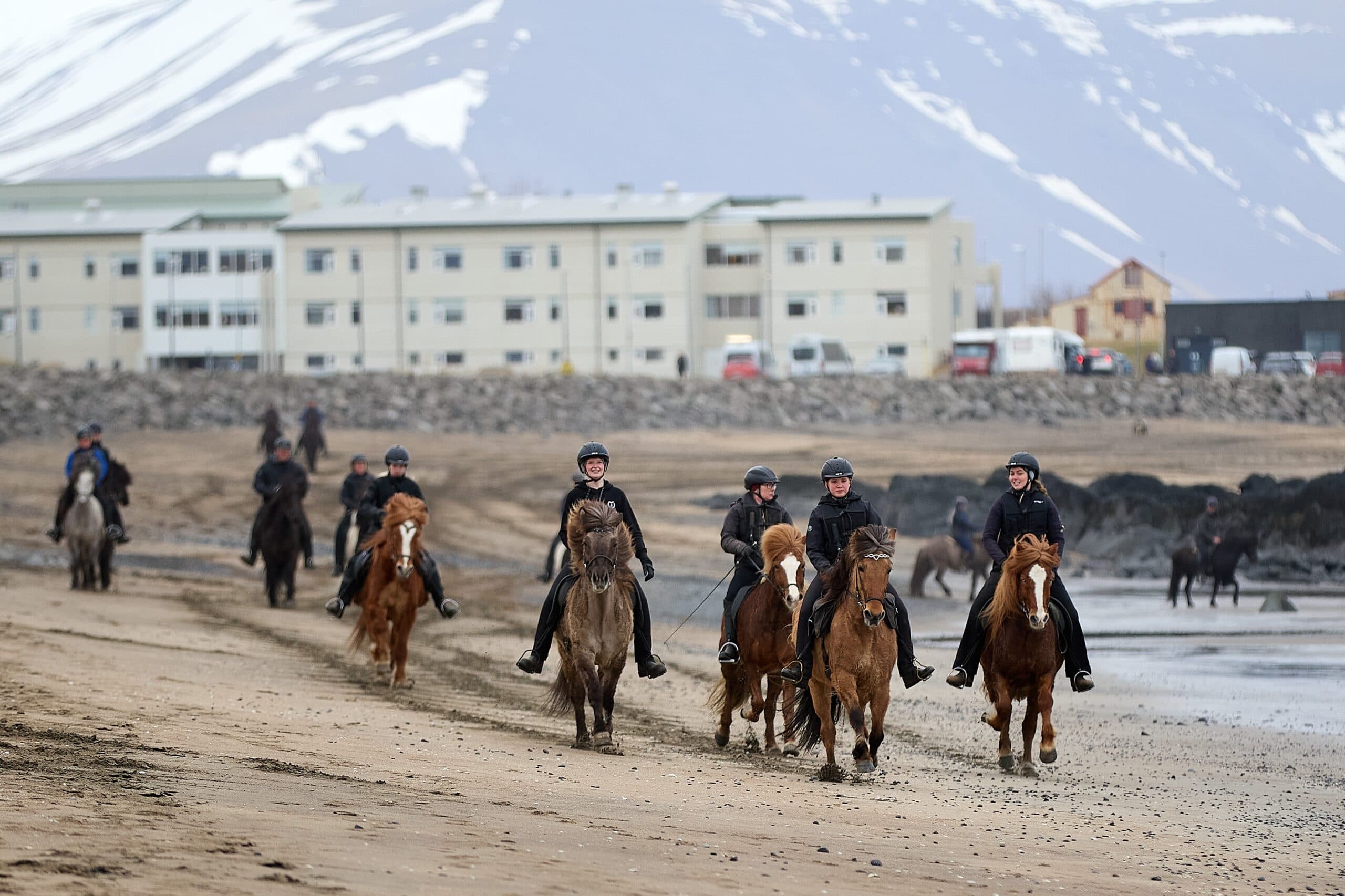 Hrossin vel viljug þegar komið var niður á sand. Ljósm. Guðmundur Bjarki Halldórsson