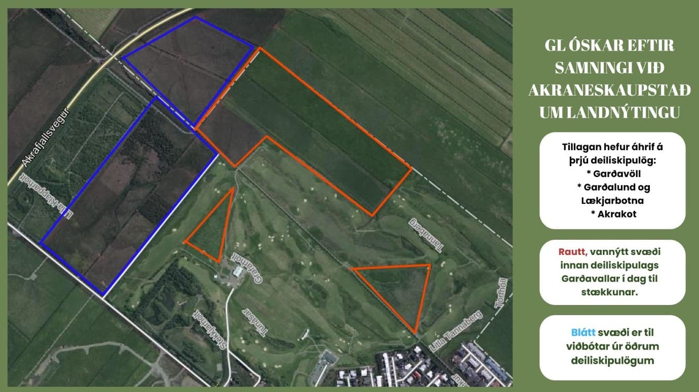 Þessi teikning er frá 2024 og sýnir svæðið sem hugsað er undir stækkun golfvallarins.