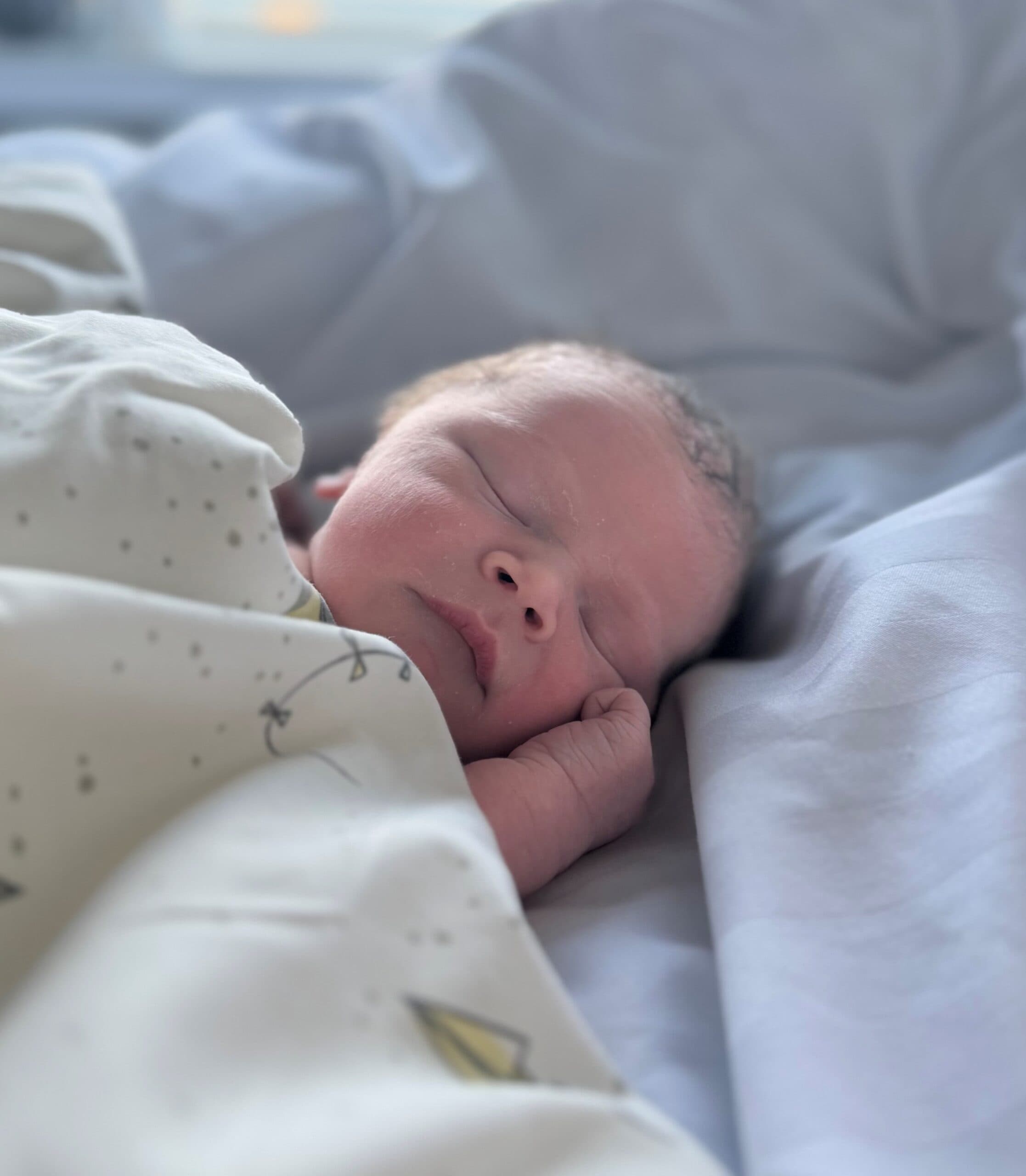Foreldrar: Kristrún Kúld Heimisdóttir og Bjarki Pétursson, Borgarnesi. Ljósm: Indriði Einar Reynisson læknir og Þorgerður Erla Bjarnadóttir sjúkraflutningakona. Drengurinn fæddist í sjúkrabíl á veginum við Hafnarfjall.