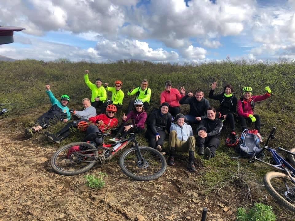 Lukkulegur hjólreiðahópur í júní 2020 eftir árlega Skarðsheiðarför. Hefð hefur verið að fara fyrsta laugardag í júní ár hvert og hjólað Skarðsheiðina. Stefnt er að því að fara 4. júní næstkomandi og verður það fimmta árið í röð sem það verð. Ljósm. aðsend.